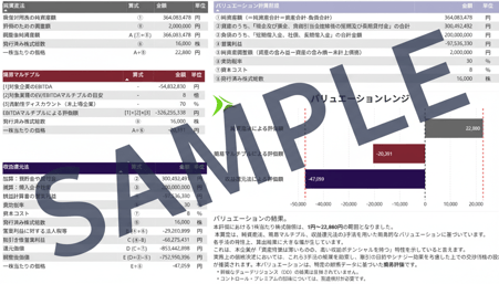 今の会社の価値を算出。データに基づき、「DCF法や類似会社比較法」を用いた客観的な企業価値(バリュエーション)を算定。