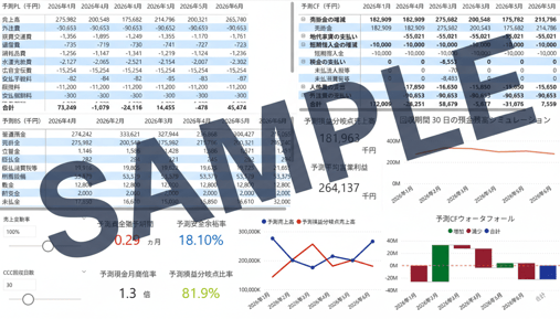 完全3表(PL・BS・CF)連動による精細な財務シミュレーション